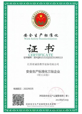 江蘇省誠信教學(xué)設(shè)備有限公司成立于2003年,是一家專注教學(xué)設(shè)備研究開發(fā)、生產(chǎn)制造、銷售服務(wù)為一體的綜合性教育、服務(wù)型企業(yè),是江蘇省教育設(shè)備行業(yè)協(xié)會會員單位、中國教育裝備行業(yè)協(xié)會會員單位,公司先后通過ISO9001國際質(zhì)量管理體系認證、IS14001國際環(huán)境管理體系認證、OHSAS18001職業(yè)健康安全管理體系認證。數(shù)十年的激勵前行鑄就企業(yè)優(yōu)質(zhì)的產(chǎn)品品質(zhì)和服務(wù)質(zhì)量。